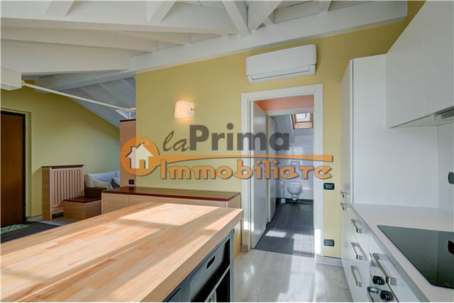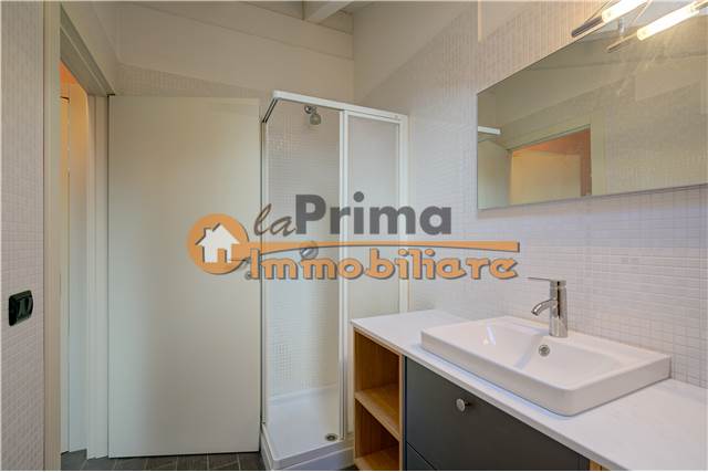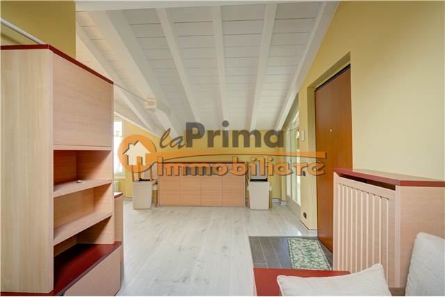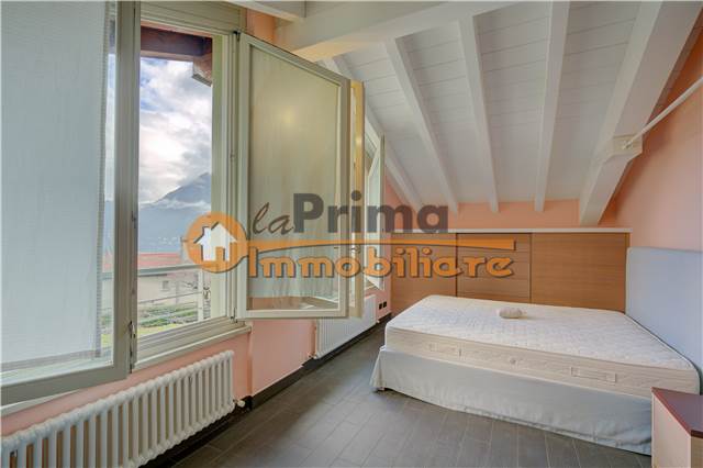 ingresso, soggiorno con cucina a vista ed accesso al terrazzo coperto, disimpegno, bagno con doccia ed ampia camera matrimoniale con vista lago.